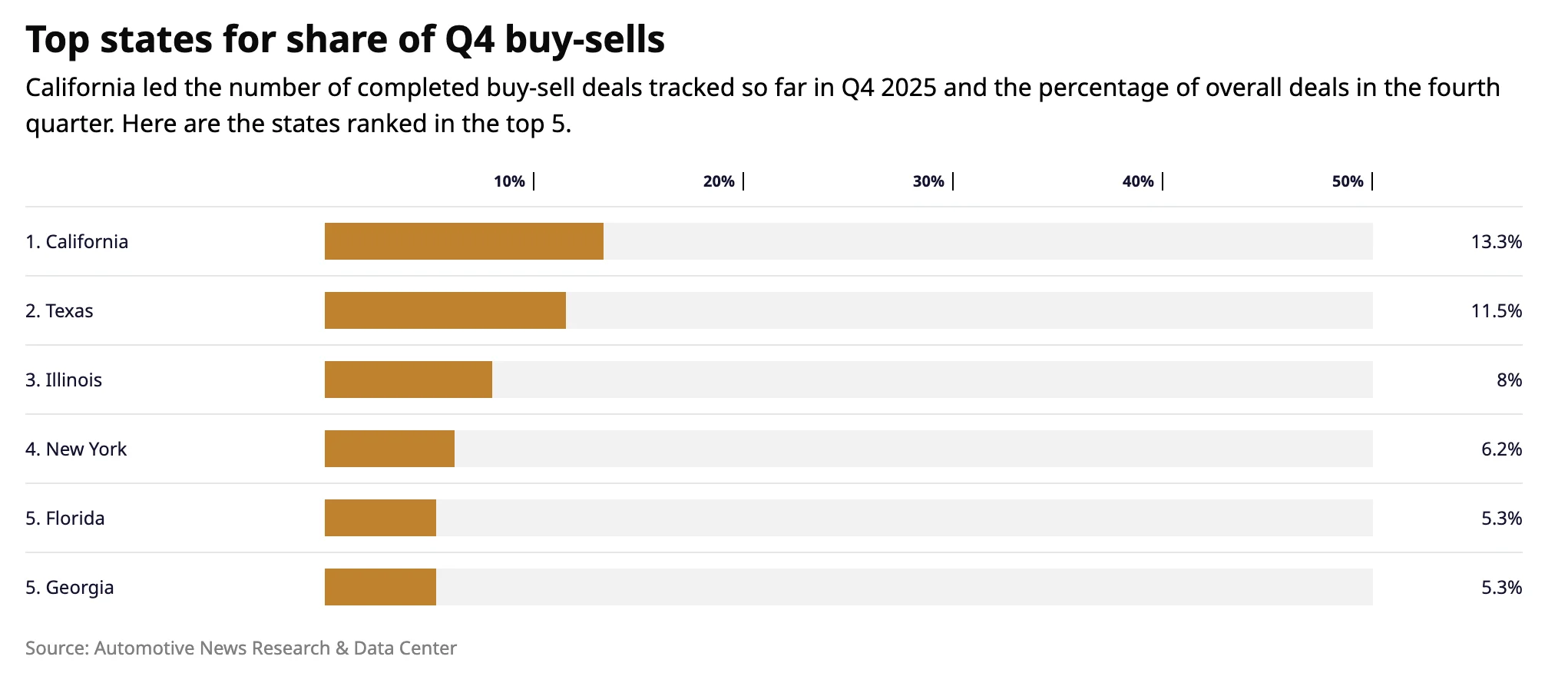 Texas, Georgia, Illinois and Louisiana followed with the most dealerships sold per state.