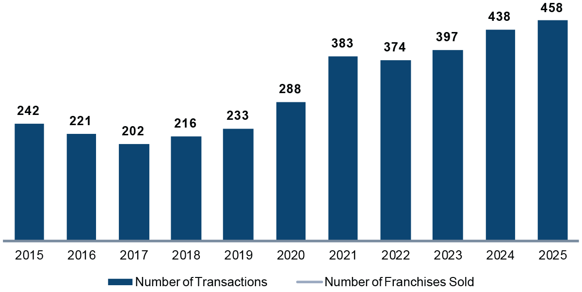 Buy/sell transactions reached record levels in 2025, significantly exceeding pre-pandemic benchmarks. Elevated activity persisted throughout the year, supported by strong earnings performance and continued access to capital among well-positioned buyers. Industry consolidation accelerated further, resulting in increased ownership concentration and a continued decline in total dealer count. This trend reinforces the strategic importance of scale and highlights the competitive intensity within the buy/sell market.